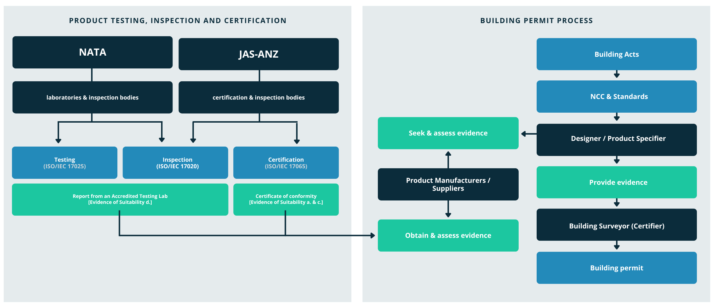In Australia, accreditation to undertake certification is provided by the Joint Accreditation System of Australia and New Zealand (JASANZ). A certificate from a product body accredited by JASANZ is one type of substantiation allowed to demonstrate product conformity under the National Construction Code. ACRS is JASANZ accredited.
